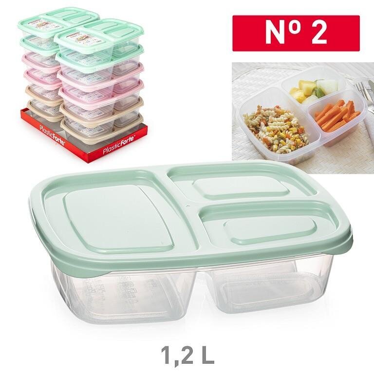 See “PlasticForte” toidukarp on ideaalne lahendus neile, kes soovivad toituda tervislikult ja mitmekülgselt ka tööl, koolis või reisil olles. 1,2-liitrine maht, mis on jagatud kolmeks eraldi sektsiooniks, võimaldab mugavalt eraldada pearoa lisanditest või suupistetest, ilma et maitsed seguneksid.