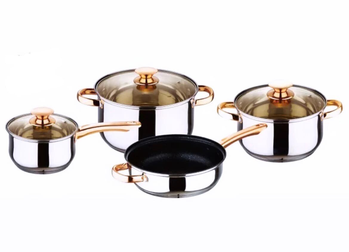 See 4-osaline nõudekomplekt on valmistatud kõrgeima kvaliteediga roostevabast terasest, mida hinnatakse selle vastupidavuse, hügieenilisuse ja lihtsa hoolduse tõttu. Komplekt on koostatud nii, et see rahuldaks põhilised toiduvalmistamise vajadused – supikeetmisest praadide küpsetamiseni.