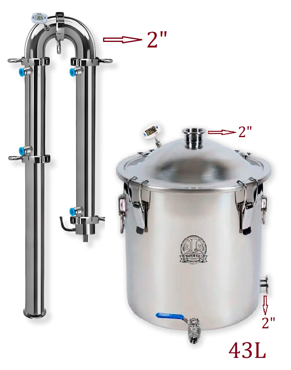 43-LIITRINE DESTILLEERIMISKOLONN MAGNUM TURBO (KINNITUSKLAMBER 2″).