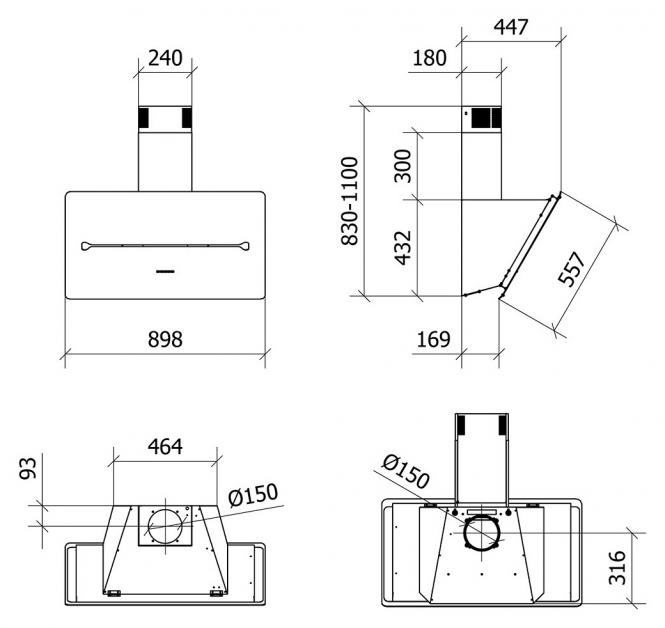 - Puhastusindikaator: Seade ise teatab, kui on aeg rasvafiltrit puhastada. Kaldus disain annab rohkem ruumi pliidi kohal ja tänu unikaalsele konstruktsioonile on minimaalne paigalduskõrgus elektrilise pliidiplaadi kohal vaid 40 cm.