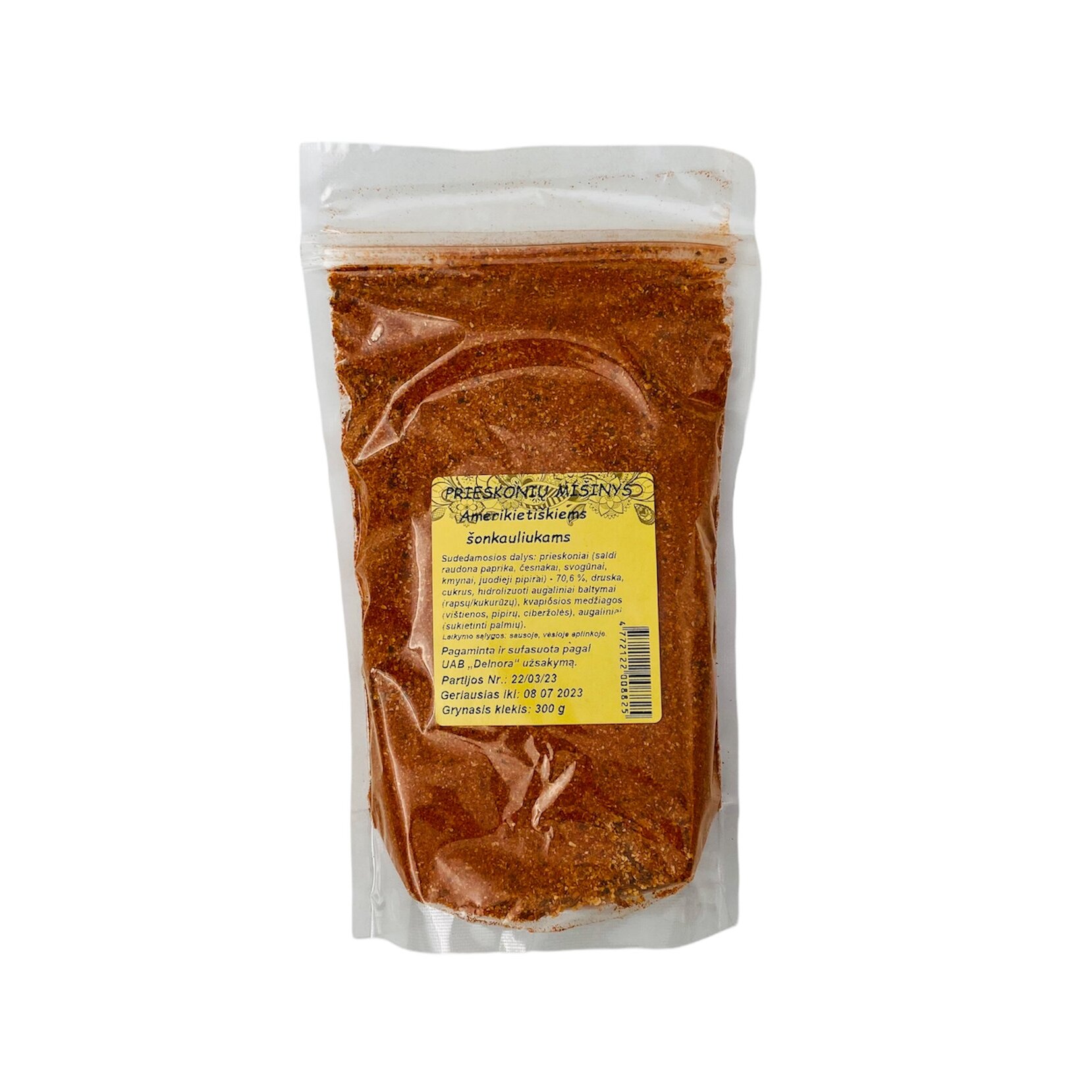 Koostisosad: Maitseained (magus paprika, küüslauk, sibul, köömned, must pipar, SINEP, SELLER, tüümian, loorberilehed, petersell), sool 11,2 %, suhkur, hüdrolüüsitud taimsed valgud (rapsi/kukeseemned), glükoosisiirup, LAKTOOS, pärmiekstrakt, lõhna- ja maitseained (tüümian, maitseained).