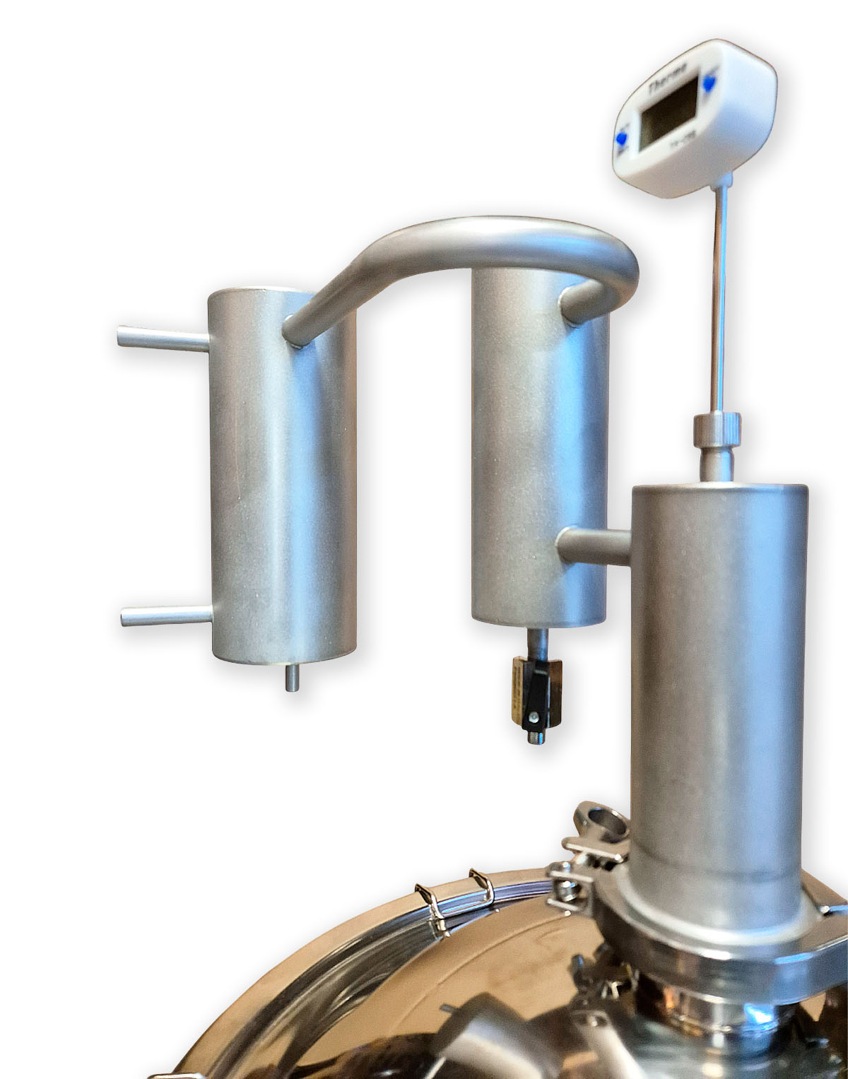 • Kseseisva muutmise võimalus – 2″ klamberühendus (rangühendus) pakub võimalust kasutada destillatsiooni jaoks muid komponente. Näiteks paigaldada täiendav silinder, diopter või destilleerimisnõu kiiver;