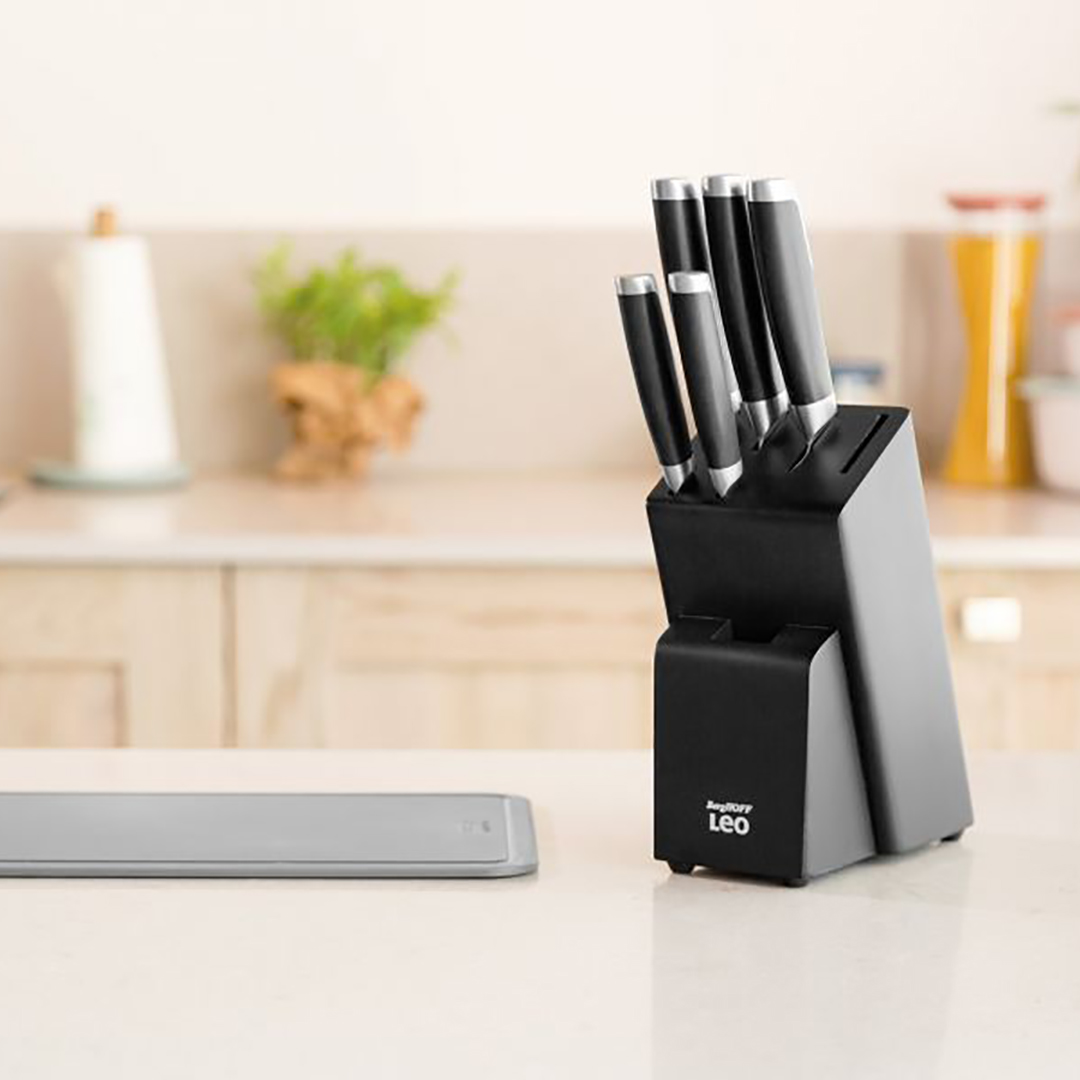 Oluline noakomplekt, mis sisaldab viit peamist nuga, mis on mõeldud 99% kõigi köögi lõikamistööde tegemiseks: alates köögiviljade hakkimisest kuni leiva viilutamise ja liha lõikamiseni. Alus koos täiendavate pesadega võimaldab tulevikus mugavalt oma kollektsiooni laiendada.