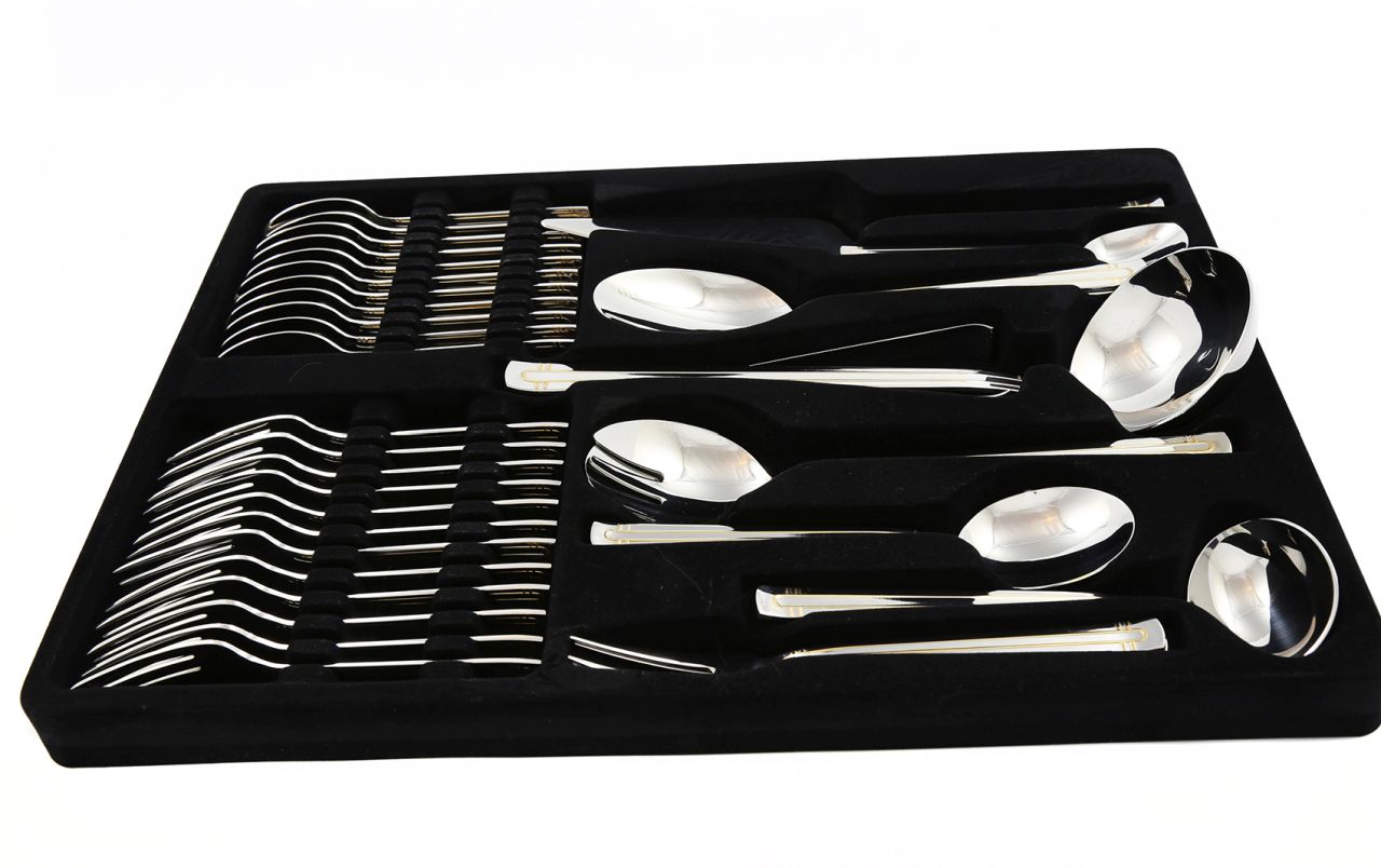 See komplekt on läbi mõeldud kuni väikseima detailini. Lisaks standardsetele nugadele, kahvlitele ja lusikatele leiad sellest kõik, mida võib vaja minna serveerimisel: kulbi supi jaoks, kastmekulbi, tordilabida, salati serveerimisvahendid, suhkru-, koore- ja lihatangid. See on täielik lahendus, mis võimaldab serveerida laitmatult igat rooga.