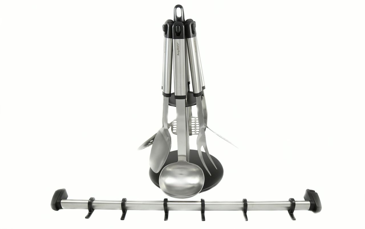 Kõik tööriistad on valmistatud kvaliteetsest, mattpoleeritud roostevabast terasest, mis pole mitte ainult vastupidav ja hügieeniline, vaid näeb ka suurepärane välja moodsas köögis. Pöörlev karussell-tüüpi alus võimaldab hõlpsasti haarata mis tahes tööriista ning mugavad õõnsad käepidemed ei kuumene ega väsita kätt. See on suurepärane kingitus majapidamisse kolimisel või korralik uuendus omaenda kööki.