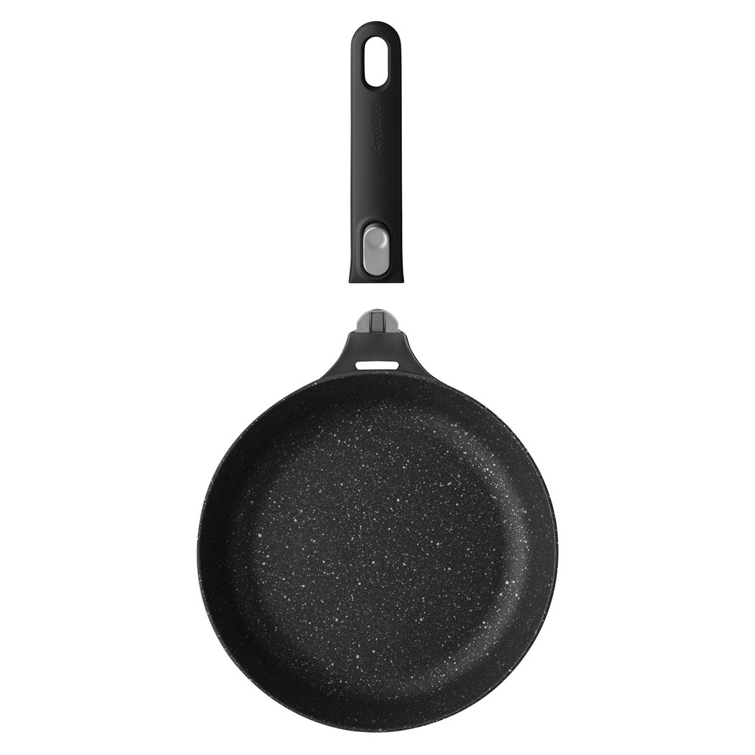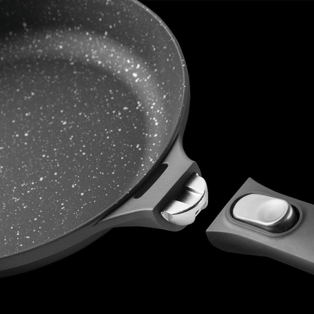 - Otse pliidilt ahju: Selle panni suurim eelis on kergesti, ühe nupuvajutusega eemaldatav käepide. Alustage prae praadimist pliidil ja lõpetage see ahjus – kõik ühes pannis! See säästab aega, ruumi ja vähendab pestavate nõude hulka.