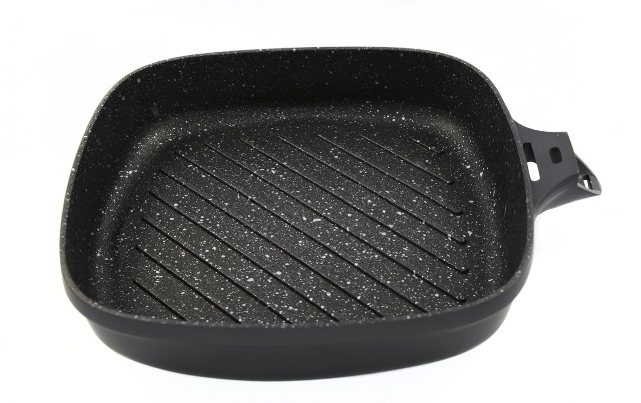 Suur, ruudukujuline grillpann, mis on mõeldud pere suurusega portsjonite küpsetamiseks igat tüüpi pliitidel ja ahjus. Ideaalne neile, kes soovivad saavutada autentset grilliefekti ja valmistada suuremaid toidukoguseid.