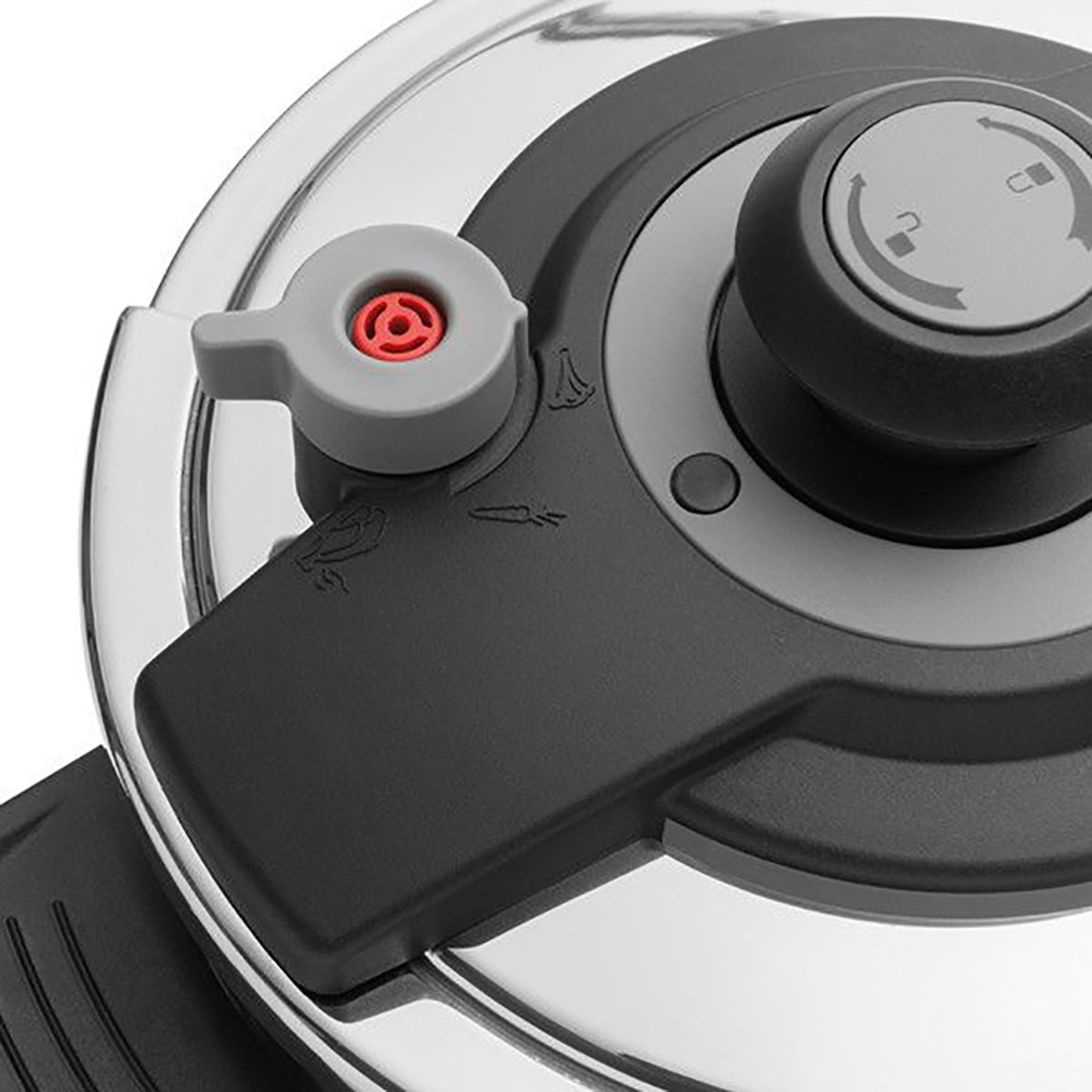 - Maksimaalne ohutus: Võid tunda end täiesti turvaliselt. Kiirkeedupotil on mitmetasandiline kaitsesüsteem: usaldusväärne kaane lukustus, rõhuregulaator ja kaitseklapp, mis tagavad sujuva ja ohutu valmistamisprotsessi.