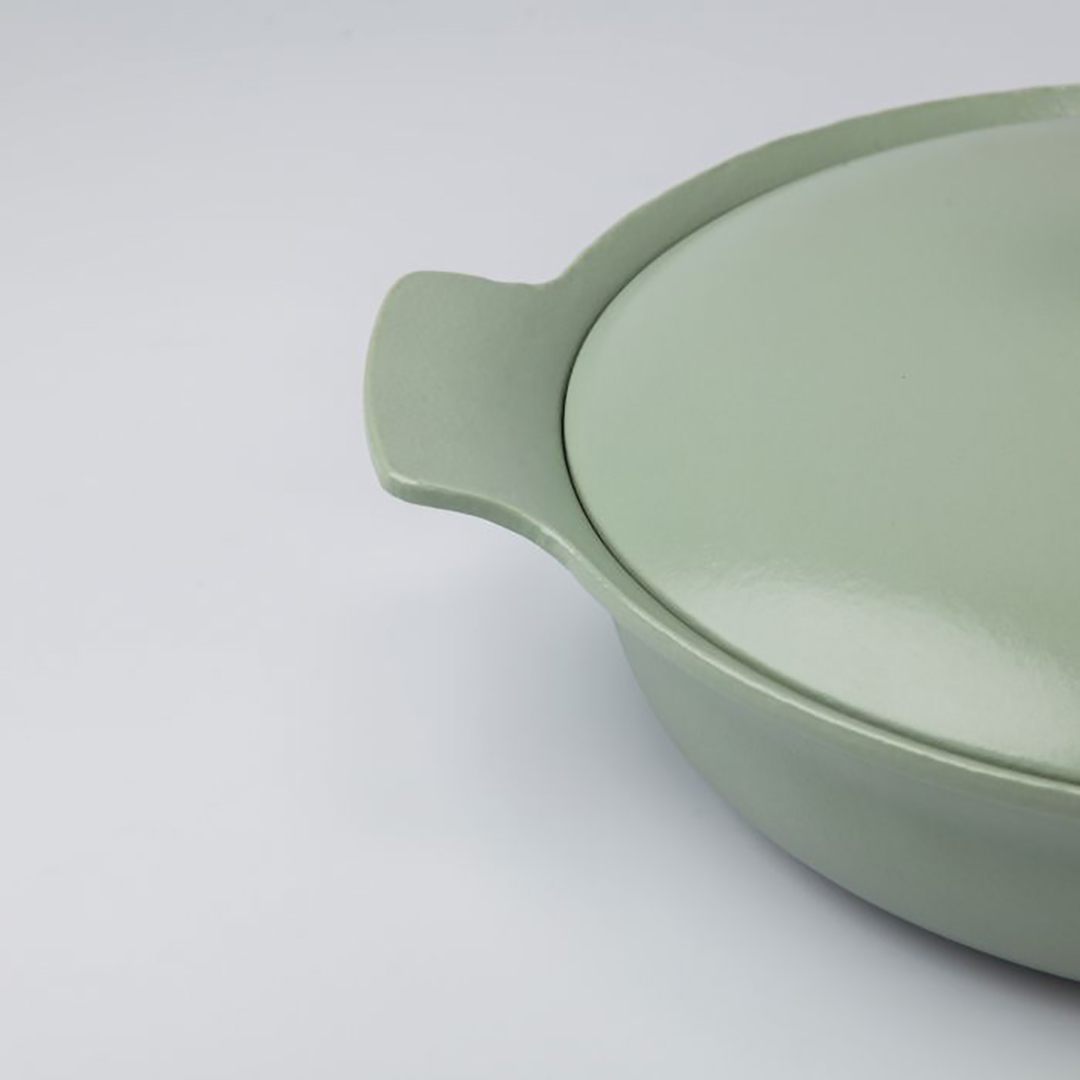 Pann on valmistatud kvaliteetsest malmist, mis tagab ideaalselt ühtlase kuumuse jaotuse ja hoiab soojust pikka aega. See võimaldab saavutada suurepäraseid pruunistamistulemusi ja hautada roogasid aeglaselt. Sisekülg, heleda kreemika värvusega emailkate on mittenakkuv, kriimustuskindel, kergesti puhastatav ja valmistatud ilma kahjulike PFOA aineteta.