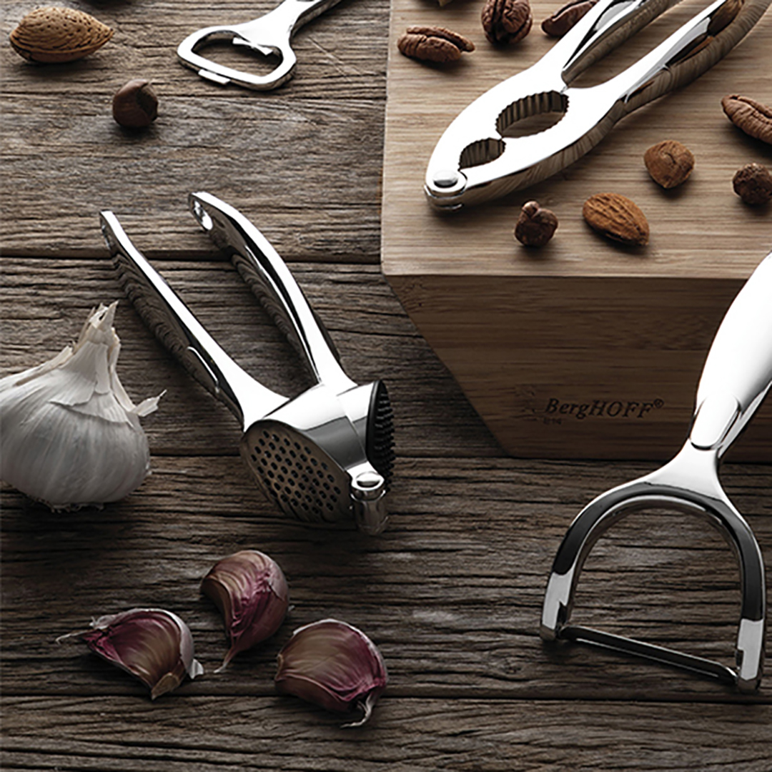 Usaldusväärsed ja praktilised BergHOFFi köögiriistad aitavad teil ellu viia ka kõige loomingulisemad ideed ilma muredeta. See “Essentials” sarja küüslaugupress pole erand. Tugev, mugav ja elegantne, sellest saab asendamatu abiline, kui soovite roogi maitsestada värske küüslaugu aroomiga.