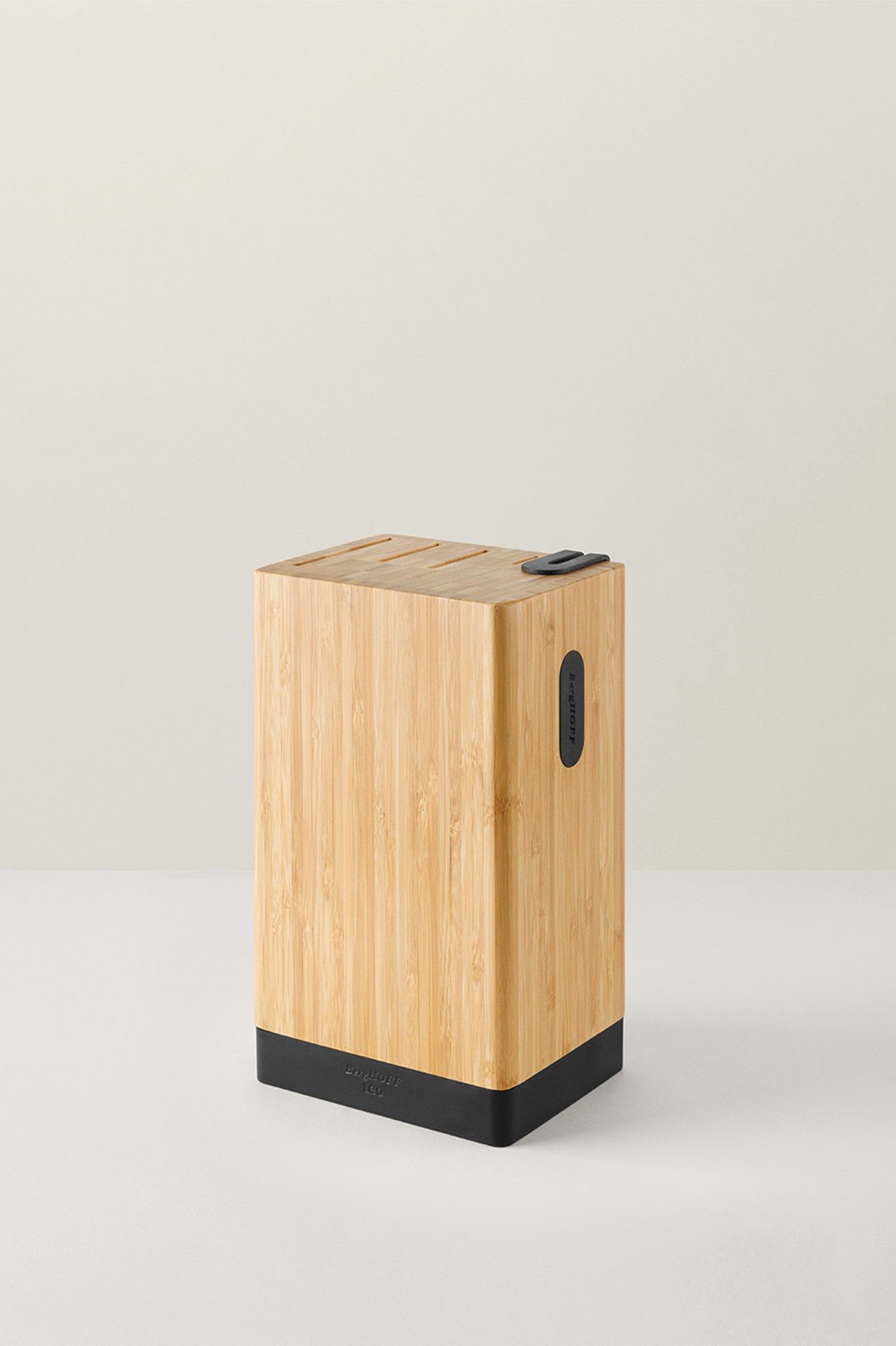 Kaunis ja jätkusuutlik bambusest alus on rohkem kui lihtsalt koht nugade hoidmiseks. Selle ülaosas on integreeritud teritaja, mis võimaldab teil pidevalt säilitada nugade laitmatut teravust. Aluse küljele on paigaldatud tugev magnet – see on suurepärane koht köögikääride või muude metallist tööriistade mugavaks hoidmiseks.