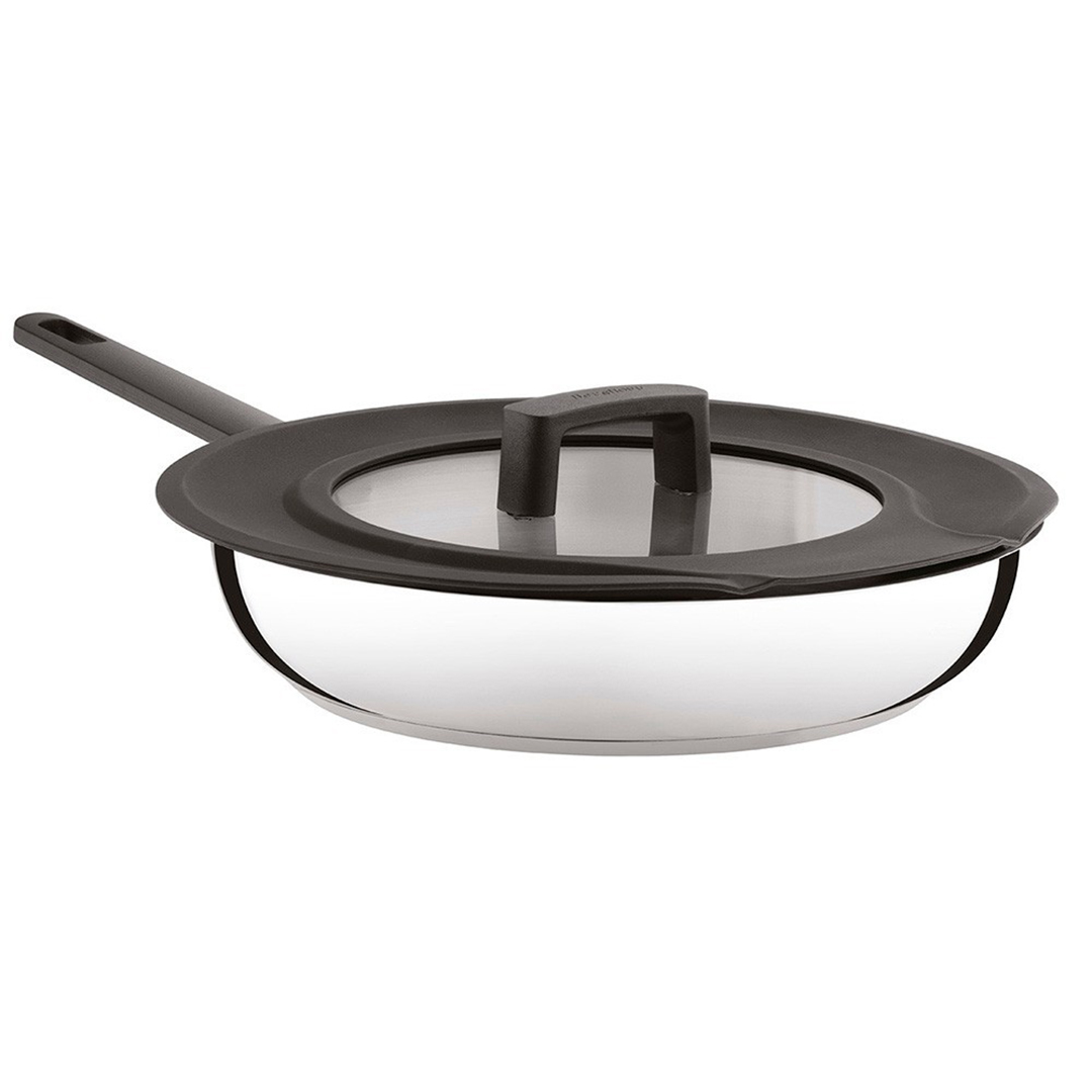 - Uuenduslik universaalne kaas: Silikoonäärega klaaskaas sobib kolmele erinevale läbimõõdule (24, 26 ja 28 cm). Integreeritud kurnamisavad võimaldavad mugavalt liigse vedeliku ära valada ning kuumakindel bakeliitkäepide tagab ohutuse.