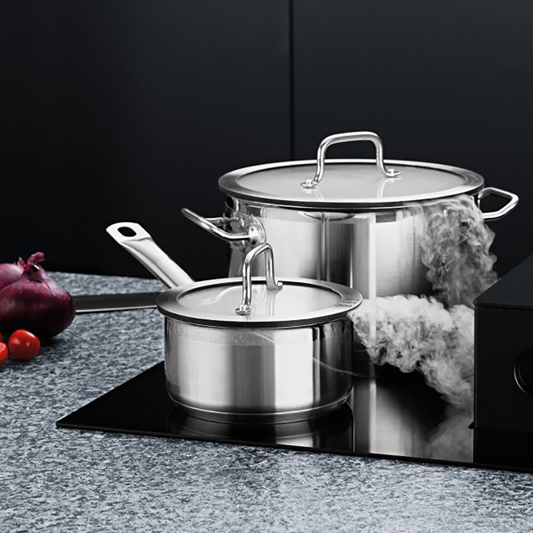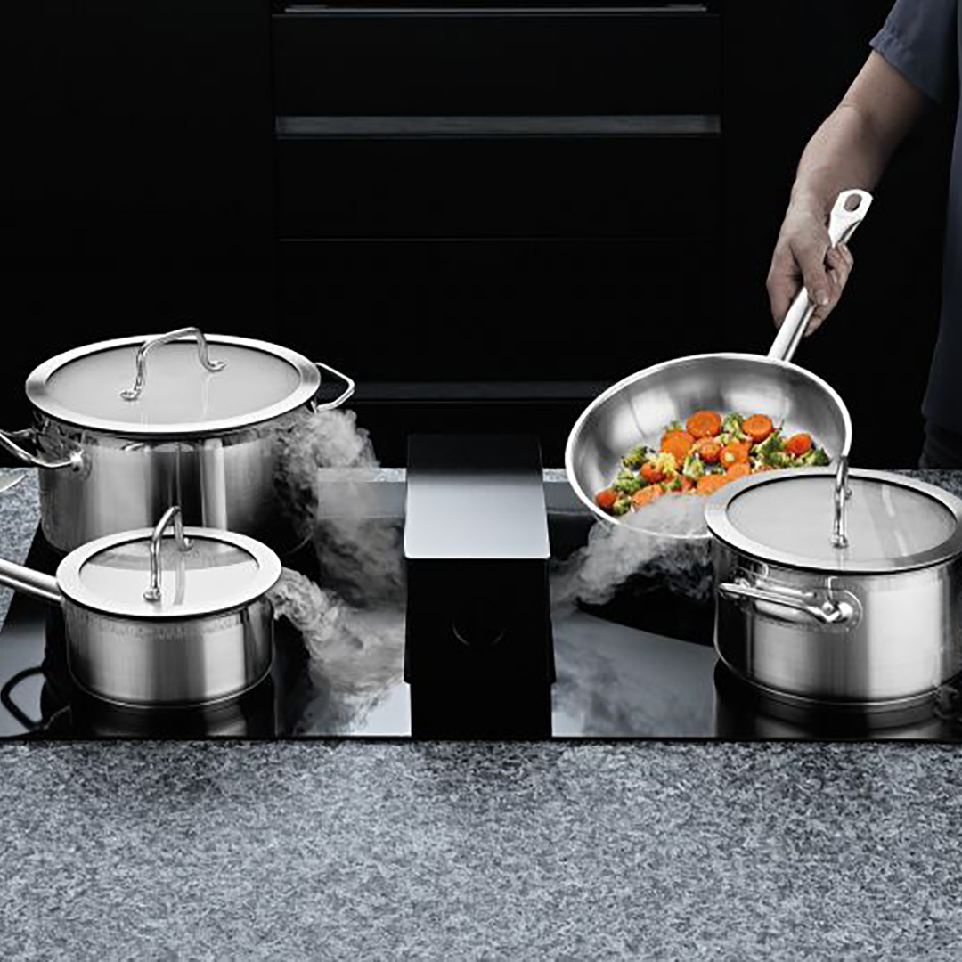 Professionaalne pottide ja panni komplekt, mis on spetsiaalselt loodud kasutamiseks pliidiplaati integreeritud õhupuhastitega (“Downdraft” süsteemid). Spetsiaalne kaante konstruktsioon võimaldab auru tõhusalt imemisavasse suunata. Komplekt on universaalne ja sobib kõikidele pliiditüüpidele.