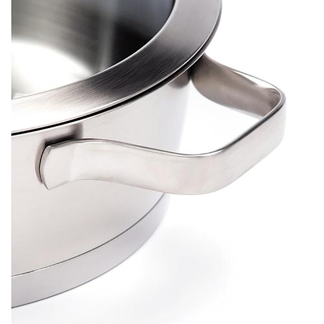 Pott on valmistatud kõrgekvaliteedilisest 18/10 roostevabast terasest. See materjal on eriti hügieeniline, ei reageeri toiduga, ei anna sellele metalli maitset ning on vastupidav korrosioonile ja pesuvahenditele. Tänu tugevale konstruktsioonile on nõu eriti vastupidav ja sobib kasutamiseks ahjus.