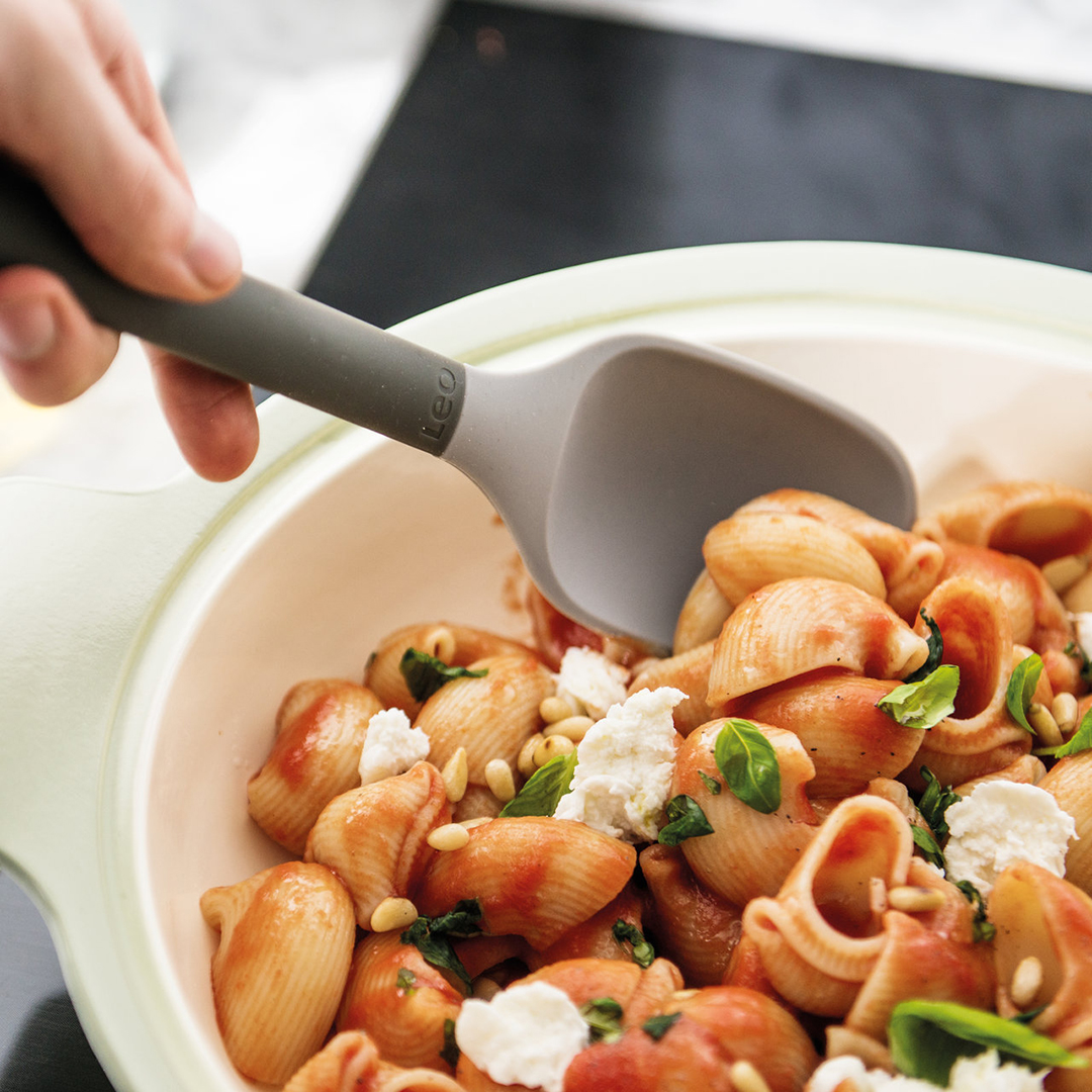 Tutvustame LEO kollektsiooni universaalset lusikat, mis on kohustuslik lisavarustus kõigile, kes hindavad funktsionaalsust ja kvaliteeti. Loodud sobima mitmesuguste tööde jaoks – alates kastme segamisest kuni köögiviljade serveerimiseni – see tööriist paistab silma oma läbimõeldud disainiga. Selle pea on valmistatud kuumakindlast silikoonist, nii et võite unustada hirmu oma lemmikute mittenakkuva pinnaga pottide ja pannide kriimustamise ees.
