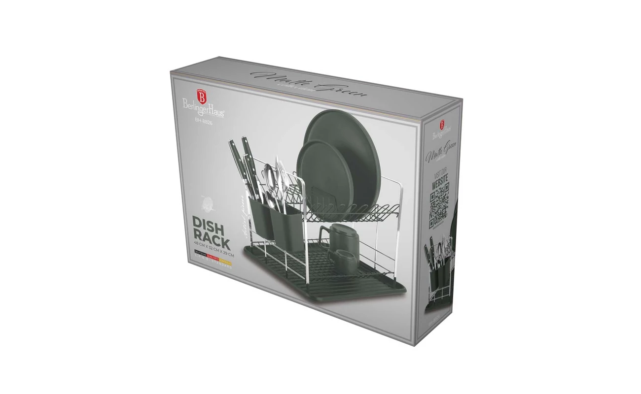 Berlinger Haus Matt Roheline nõudekuivati (BH‑8826) on praktiline ja stiilne lahendus teie köögis, aidates saavutada korras keskkonda ja kiiret nõude kuivatamist. Investeerige sellesse innovatiivsesse tööriista ja nautige iga kord, kui teie kööginõud näevad välja nagu uued pärast iga pesu!