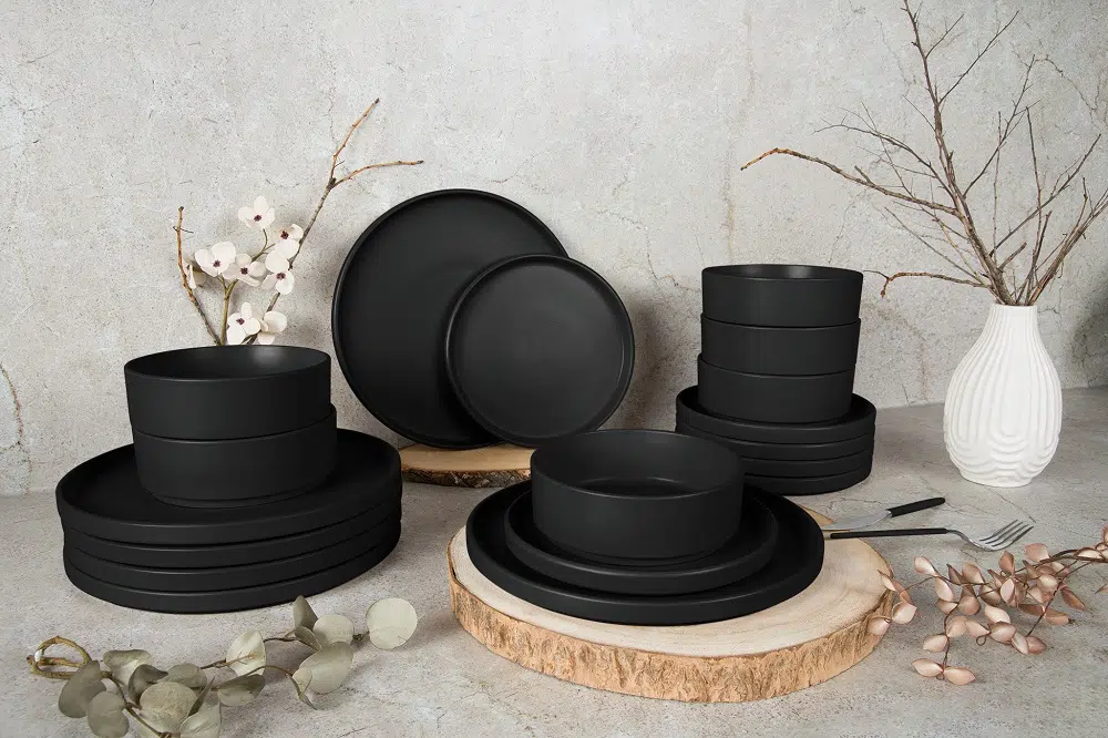 Komplekt on silmapaistvas matte musta tooniga, mis annab lauale julge, ajatu välimuse ja sobib hästi igat tüüpi interjööriga. - Kõrgekvaliteediline Kiviportselan: