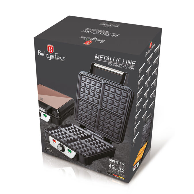 Muutke iga hommik väikseks pidupäevaks “Berlinger Haus” vahvliküpsetajaga. See stiilne roosakuldse värvusega seade ei kaunista mitte ainult teie kööki, vaid võimaldab teil kiiresti ja mugavalt valmistada maitsvaid Belgia vahvleid. Tänu suurele võimsusele ja mahutavusele on see suurepärane valik kogu perele.