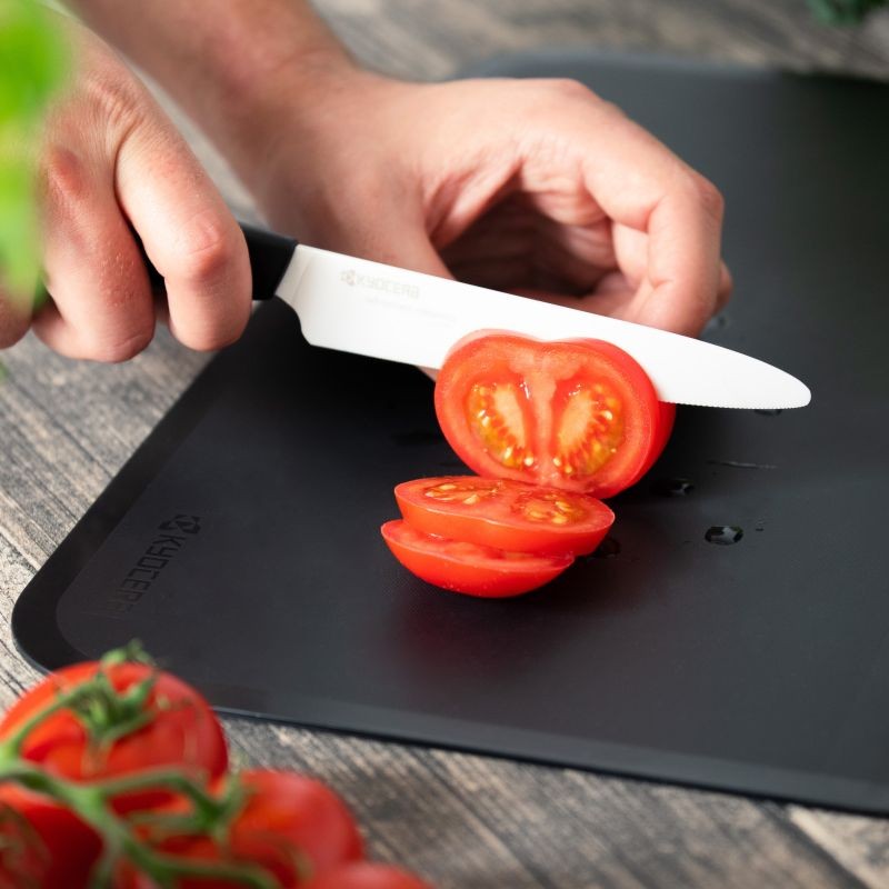 Keramiikatera terav Kyocera nuga on spetsiaalselt loodud tomatite ja muude toodete lõikamiseks, mida tavaline nuga kahjustab või millelt libiseb. Proovisite lõigata “Napoleoni” torti? Just see terav keramiiknuga lahendab paljud teie köögis õrnade toodete lõikamise probleemid.
