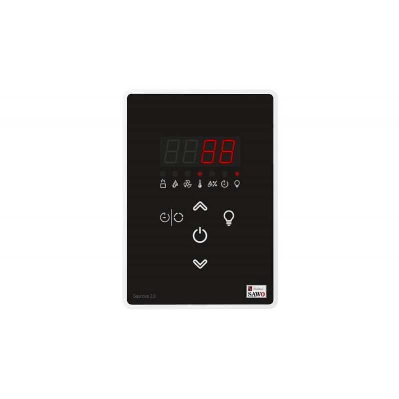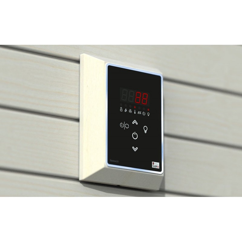✅ Nutikas Saunova 2.0 juhtimine: Intuitiivne puutepaneel võimaldab programmeerida temperatuuri, aega, juhtida valgustust ja sauna ventilatsiooni.