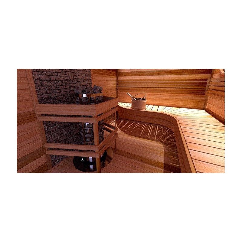 - ✅ Kiviseina esteetika: Erakordne kerise disain muudab selle sauna peamiseks aktsendiks, eriti kui see on täielikult kividega täidetud.