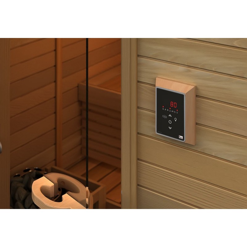 - ✅ Nutikas Saunova 2.0 juhtimine: Puutetundlik juhtpaneel intuitiivse liidesega võimaldab täpselt programmeerida sauna temperatuuri, aega, juhtida valgustust ja ventilatsiooni.