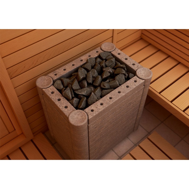 Kivist viimistlus toimib puhvrina: see neelab kiirelt küttekeha kuumuse, mistõttu saunas ei tunta „põlevat“ metallilõhna ning soojus on palju mahedam.
