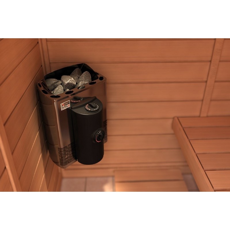 ✅ Efektiivsus: 3,6 kW võimsus on optimaalselt sobitatud 11 kg kivimassiga, tagades sauna kiire ettevalmistamise.