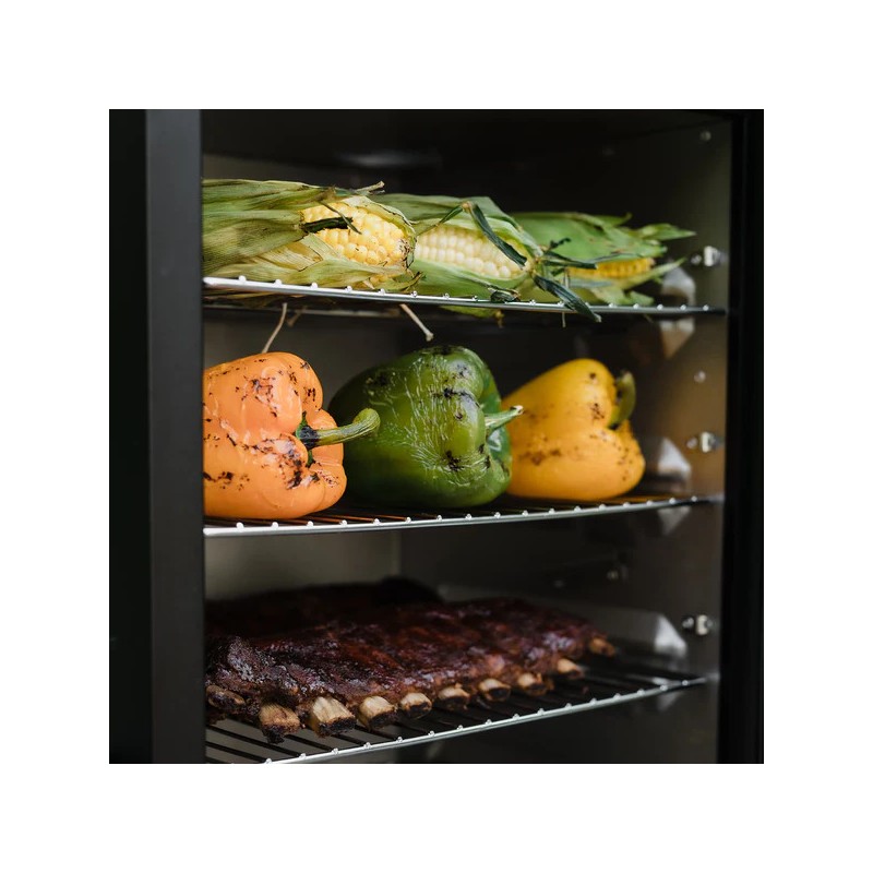 • Neli kroomitud suitsutusriiulit: Pakuvad 0,46 m² küpsetuspinda, tagades piisavalt ruumi erinevatele toodetele.
