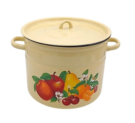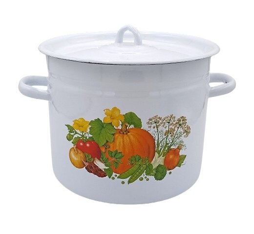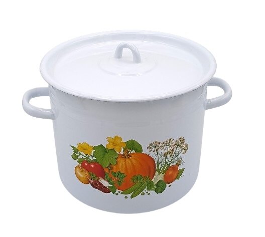 See 7-liitrine emailitud pott Ukraina tootjalt “IDILIA” on mõeldud juhtudeks, kui on vaja valmistada palju toitu. See on asendamatu nõu süldi keetmiseks, talvemooside valmistamiseks, kompotide keetmiseks või supi valmistamiseks suurele perele ja pühadeks.