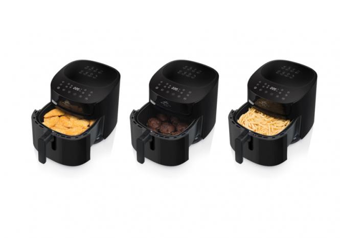 ETA Fritta Digiga ei piirdu Sa ainult küpsetamisega. See universaalne seade sobib suurepäraselt ka kookide, saiakeste küpsetamiseks või isegi seente, puuviljade ja köögiviljade kuivatamiseks. Tänu oma eriti suurele XXXL (7,2 L) mahule võib see asendada väikest kuumaõhuahju, kuid võrreldes tavalise ahjuga tarbib see kuni 50% vähem elektrit.