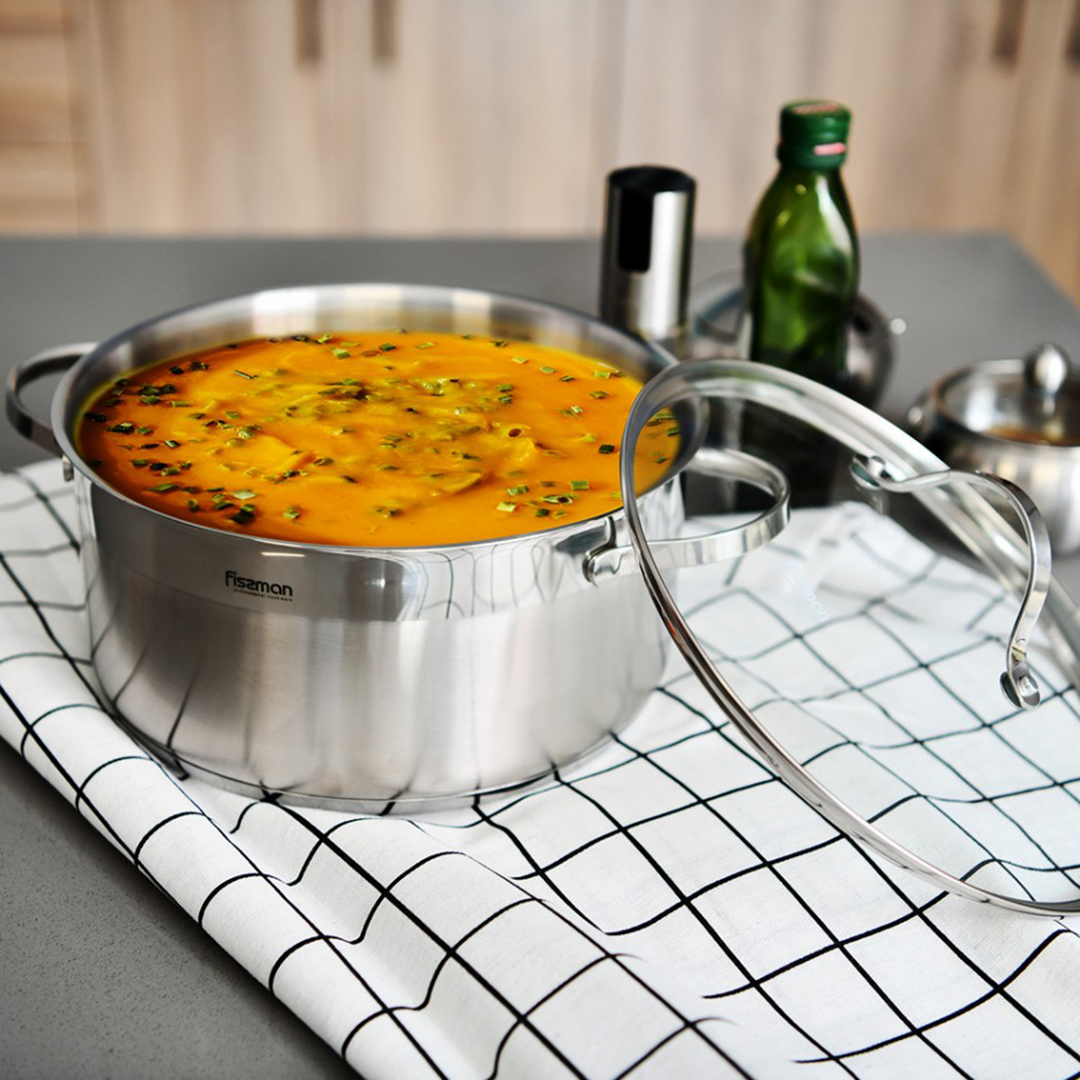 Spetsiaalne 3-kihiline termoakumulatiivne põhi tagab kiire kuumenemise, ideaalselt ühtlase soojusjaotuse ja hoiab soojust kaua. See võimaldab säästa energiat. Mugavuse tagamiseks on siseskaala, kuumuskindlad käepidemed ja klaasist kaaned, mis võimaldavad toiduvalmistamisprotsessi jälgida.