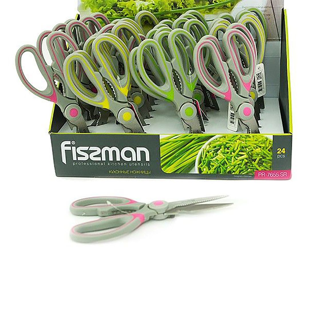 Spetsifikatsioonid Tüüp: Multifunktsionaalsed köögikäärid Kaubamärk: Fissman Mudel: F-7655 Terade materjal: Roostevaba teras Käepidemete materjal: Polüpropüleen Pikkus: 20 cm Värv: Erinevad (valitakse juhuslikult) Tootja: Fissman (Taani) Kaal: ~0.12 kg Pakendi mõõdud: 24 x 10 x 2 cm