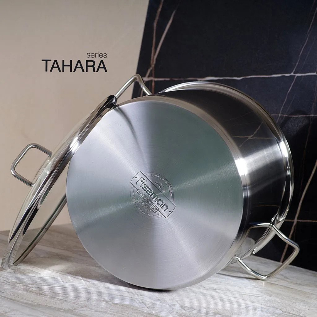 Tutvustame Fissman “Tahara” seeria potti – see on eriti mahukas, usaldusväärne ja kvaliteetne nõu, mis on loodud suurteks kulinaarseteks projektideks. Pole tähtis, kas valmistate toitu suurele perele, külalistele või tegelete konserveerimisega, saab see pott teie asendamatuks abiliseks.