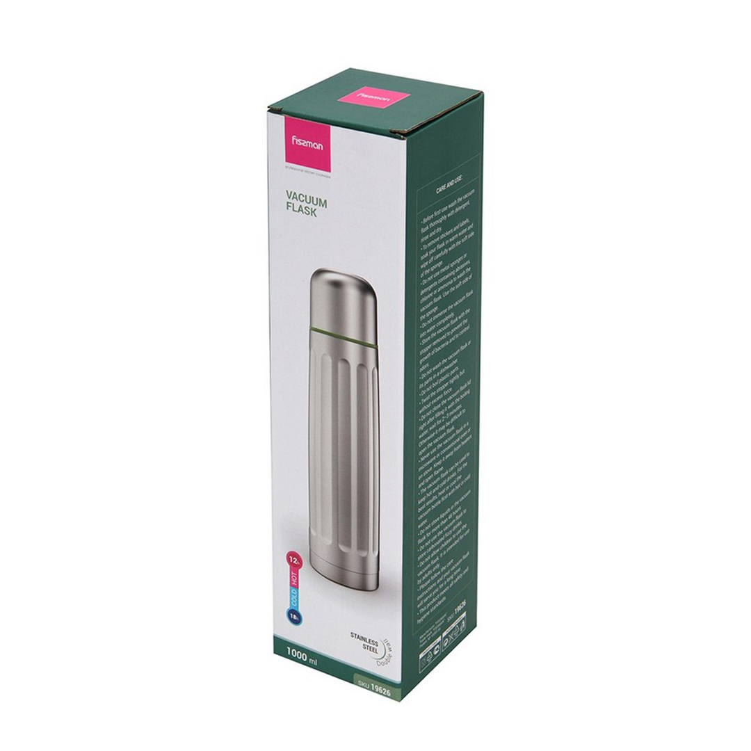 Spetsifikatsioonid Tüüp: Termospudel Kaubamärk: Fissman Mudel: F-19626 Materjal: Roostevaba teras Kolbi materjal: Roostevaba teras Maht: 1000 ml (1 L) Värv: Metall Tootja: Fissman (Taani) Kaal: ~0.57 kg Pakendi mõõtmed: ~30 x 9 x 9 cm
