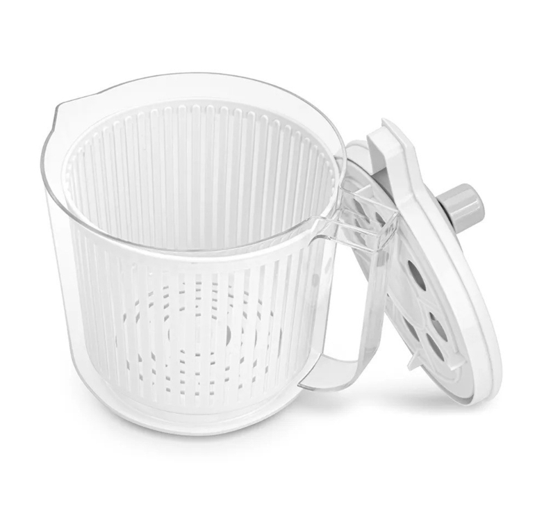See tööriist on midagi enamat kui lihtsalt kuivati. Välist kaussi saab kasutada stiilse serveerimisnõuna valmis salatitele ning sisemist sõela kurnana köögiviljade või marjade pesemiseks jooksva vee all.