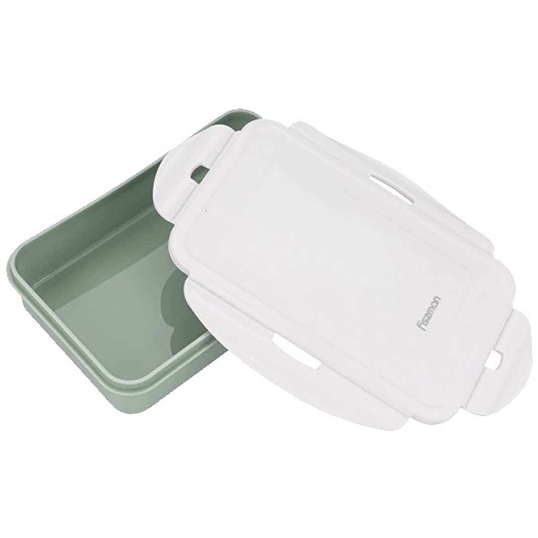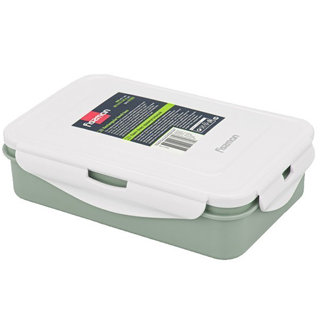 Spetsifikatsioonid Tüüp: Kaasaskantav toidukarp Kaubamärk: Fissman Mudel: F-6780 Materjal: Polüpropüleen (BPA-vaba), silikoon Maht: 800 ml Mõõdud (P x L x K): 20.7 x 13.5 x 5 cm Värv: Roheline Temperatuurivahemik: 0 °C kuni +100 °C Tootja: Fissman (Taani) Kaal: ~0.2 kg Pakendi mõõdud: 21 x 14 x 5.5 cm
