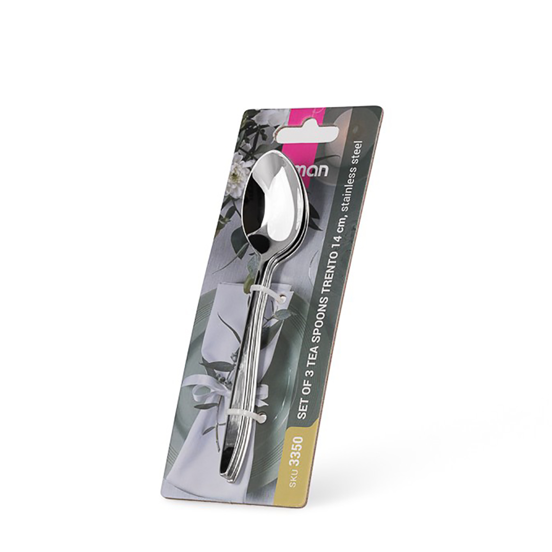 “Trento” teelusikate komplekt on praktiline ja elegantne viis olemasoleva söögiriistade kollektsiooni täiendamiseks või kadunud riistade asendamiseks. Klassikaline, minimalistlik disain ja peegelläige sobivad suurepäraselt igasuguse laua kattega, lisades sellele pidulikkust ja soliidsust.
