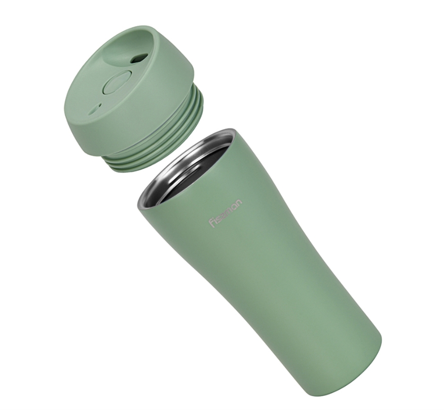 Selle tassi suurim eelis on eriti mugav avamissüsteem nupule vajutamisega, ilma kaant maha keeramata. Täiendav nupufiksaator (lukk) kaitseb juhusliku vajutamise eest, nii et võite tassi julgelt seljakotis või kotis kaasas kanda, kartmata, et jook välja voolab.