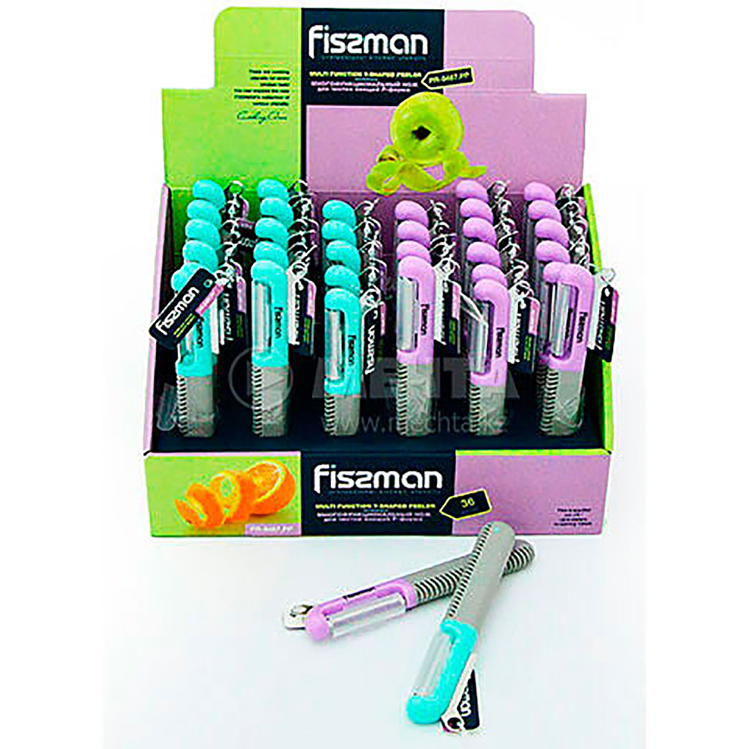 Spetsifikatsioonid Tüüp: Kahepoolne P-kujuline köögiviljakoorija Kaubamärk: Fissman Mudel: F-7305 Tera materjal: Roostevaba teras Käepideme materjal: Polüpropüleen, silikoon Pikkus: 15 cm Värv: Erinevad (valitakse juhuslikult) Tootja: Fissman (Hongkong) Kaal: ~0.05 kg Pakendi mõõtmed: 21 x 8 x 3 cm