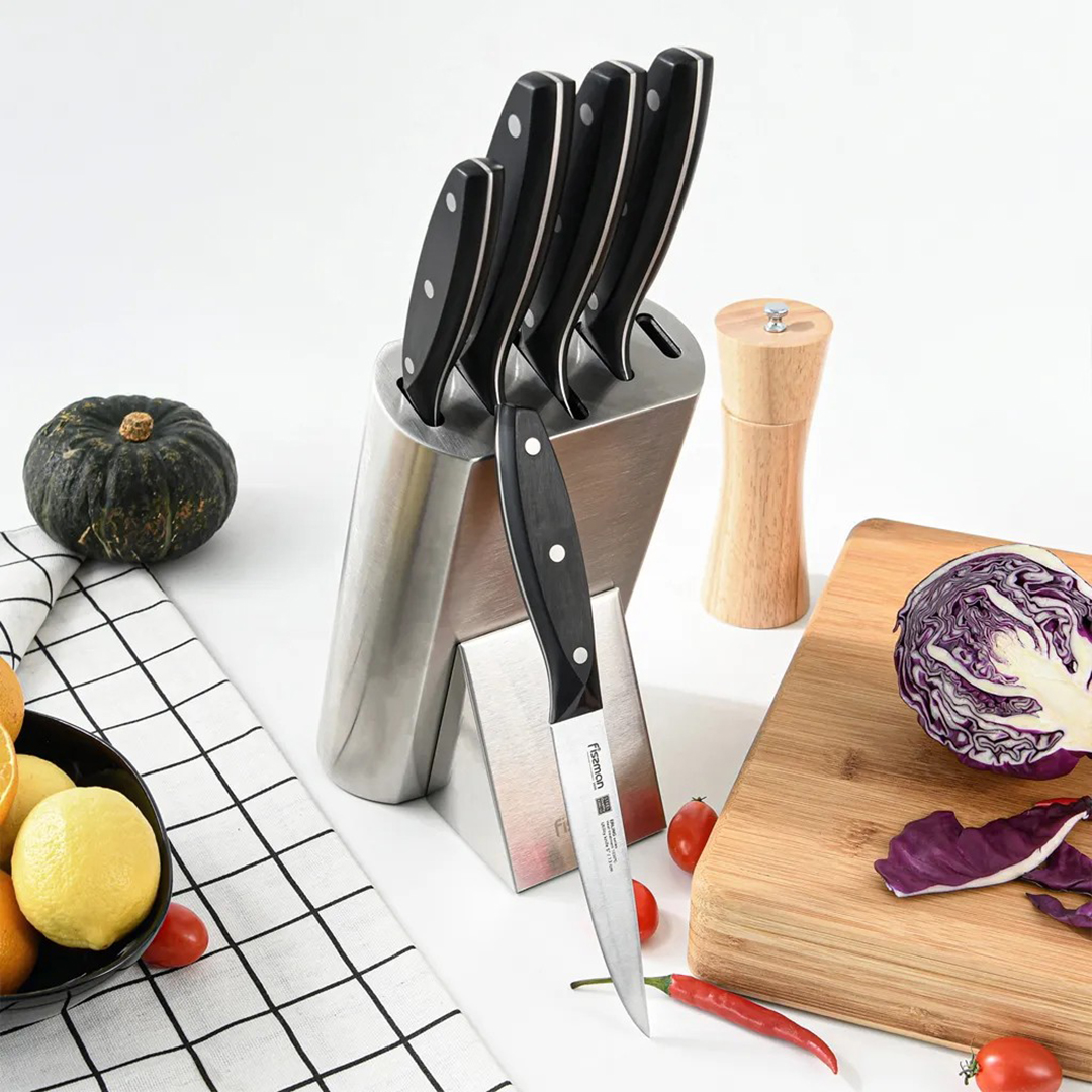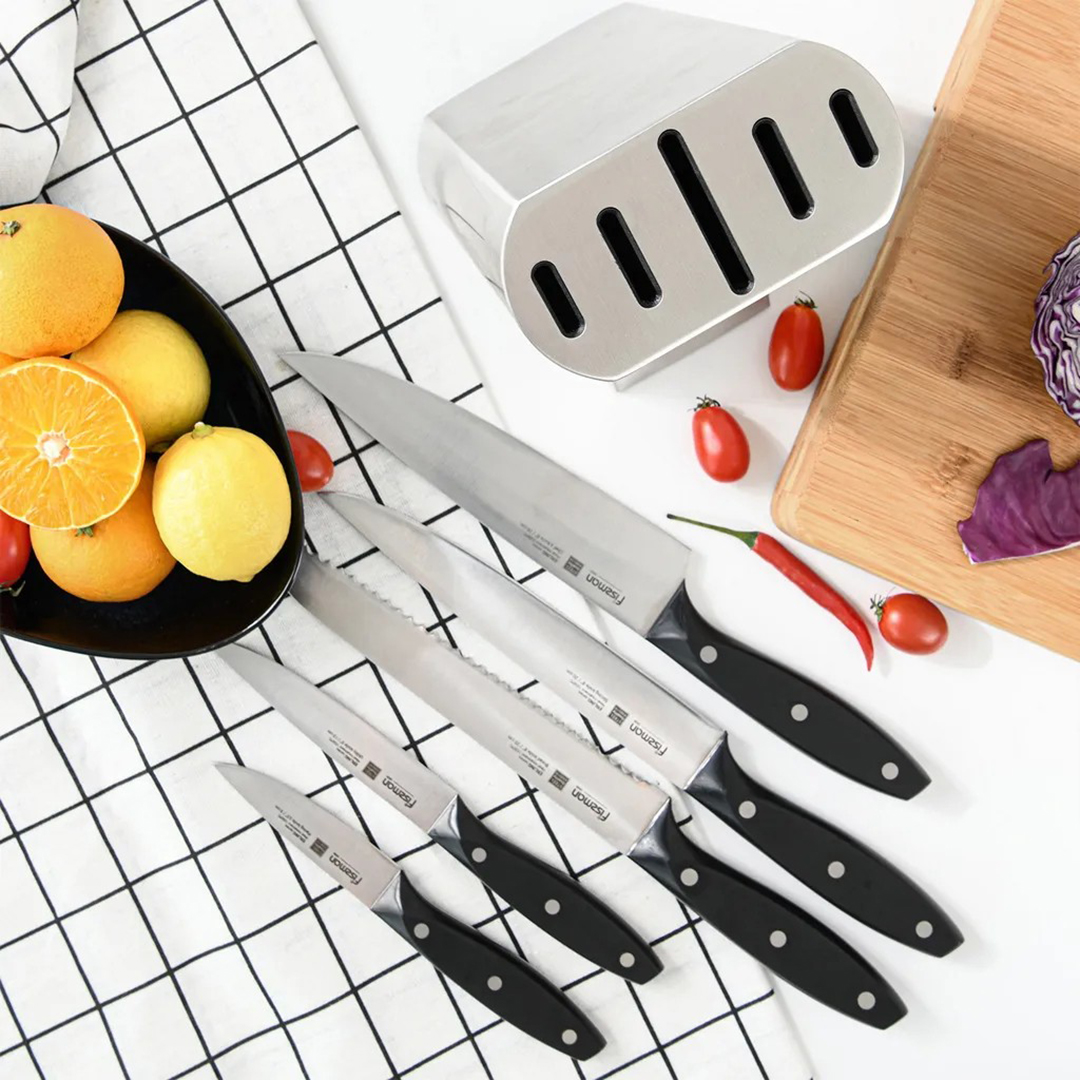 * ✅ Täielik komplekt: 5 kõige vajalikumat nuga ja stiilne alus – kõik ühes kohas.