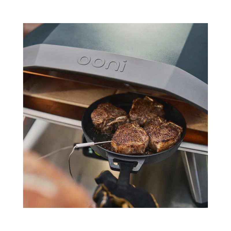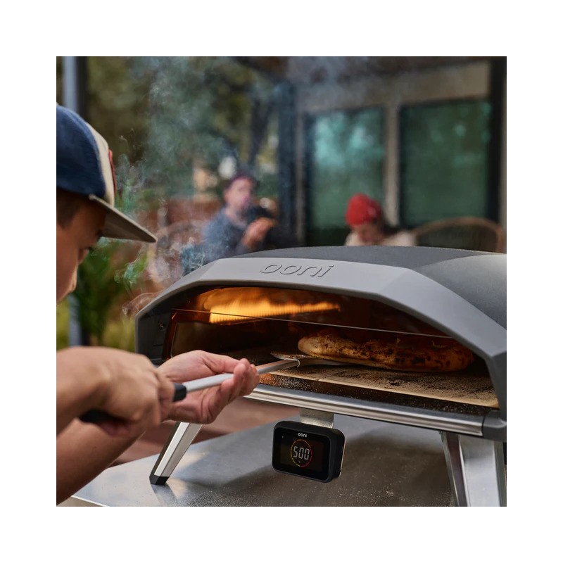 Küpseta nutikamalt Ooni Connect™ Bluetoothi toega digitaalse temperatuurikeskusega. Eesmine ekraan näitab reaalajas ümbritsevat temperatuuri ja toiduanduri (termomeetri) näite ning telefoniga ühendatuna saad märguandeid, mis aitavad iga kord täiusliku tulemuse tagada.