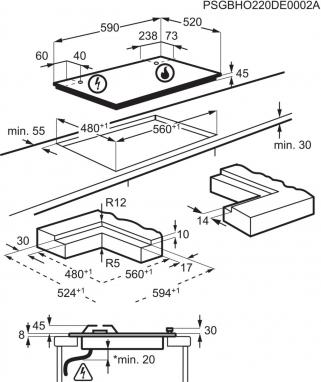 - Asetage pliidiplaat ettevalmistatud 560×480 mm avausse tööpinnal.
