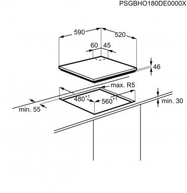 Valmistage töötasapinna väljalõige täpselt vastavalt näidatud mõõtmetele 560×480 mm.