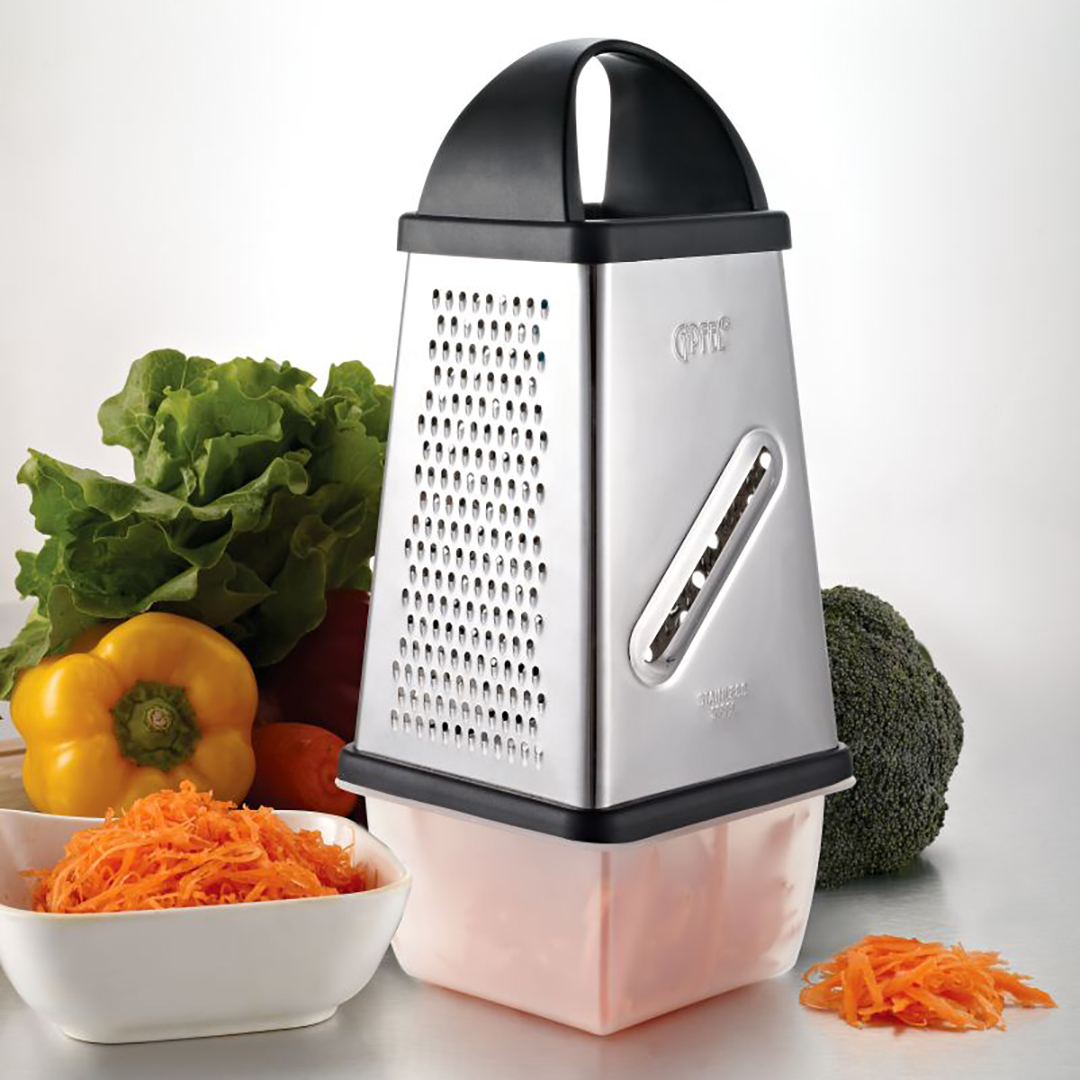 4 riivimispinda: Erineva jämedusega terad võimaldavad valida sobivaima viisi köögiviljade, juustu, puuviljade või šokolaadi riivimiseks.