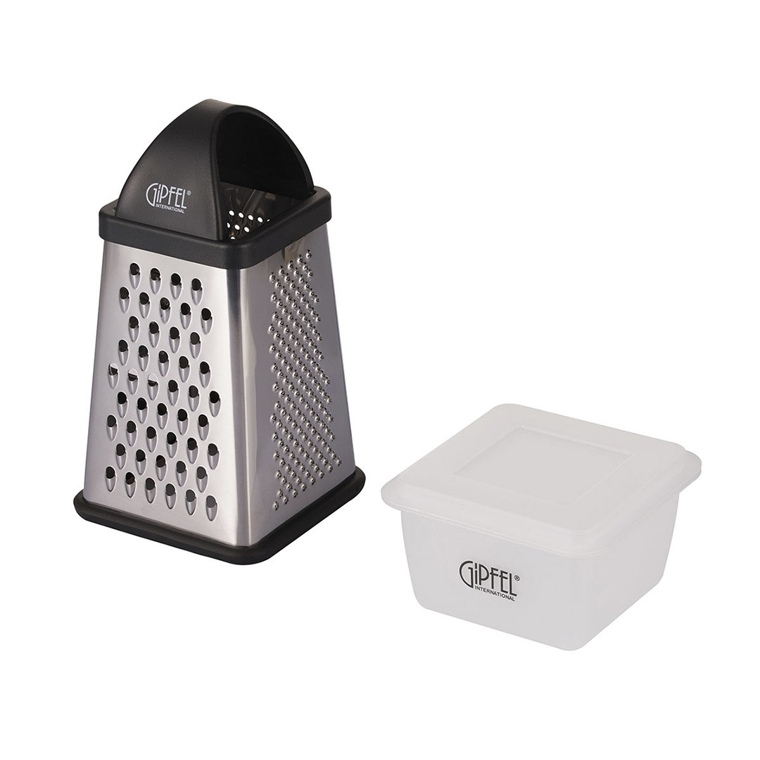 Tutvustame GIPFEL 5490 – universaalset 4-poolset riivi, mis muudab teie töö köögis lihtsamaks. Komplekti kuuluv kaasaskantav konteiner võimaldab riivida tooteid otse nõusse, säilitades puhtuse ja korra. Riivitud tooteid saate mugavalt samas anumas külmkapis hoida.