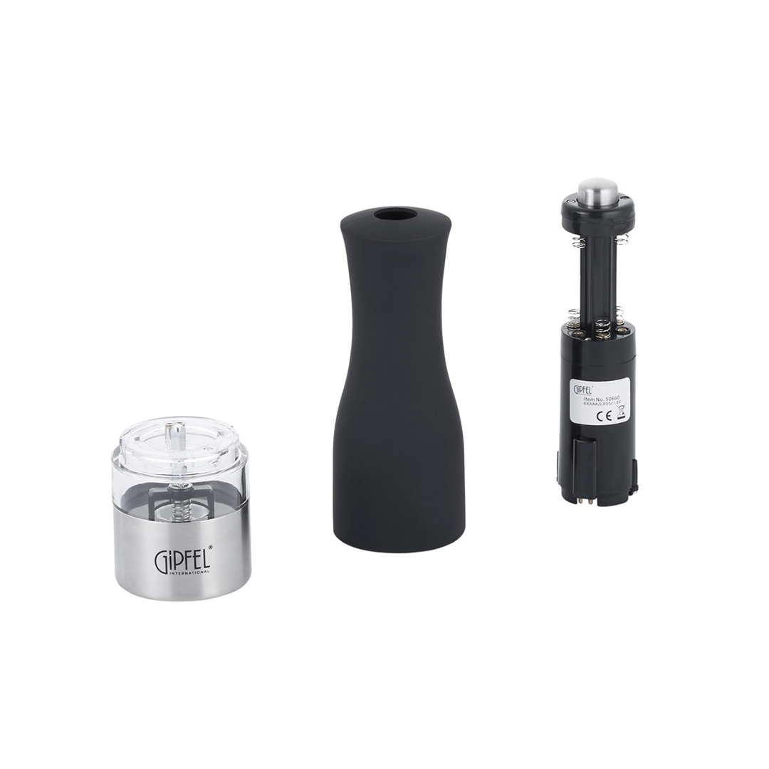 Elektriline veski GIPFEL CASTLE on näide ideaalsest elektrilisest maitseainete veskist. Selles on valguse ja jahvatamise astme regulaator, mistõttu sobib erinevat tüüpi vürtsidele. Läbipaistev plastikosa element võimaldab visuaalselt kontrollida veskis olevate vürtside kogust, samas kui keraamilised jahvatuspadrunid ühendavad teravuse ja vastupidavuse. Tähelepanu väärib rikkalik must värv, mis muudab veski mitte ainult praktiliseks aksessuaariks, vaid ka stiilseks sisekujunduselemendiks.