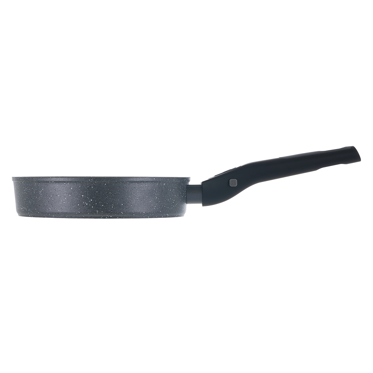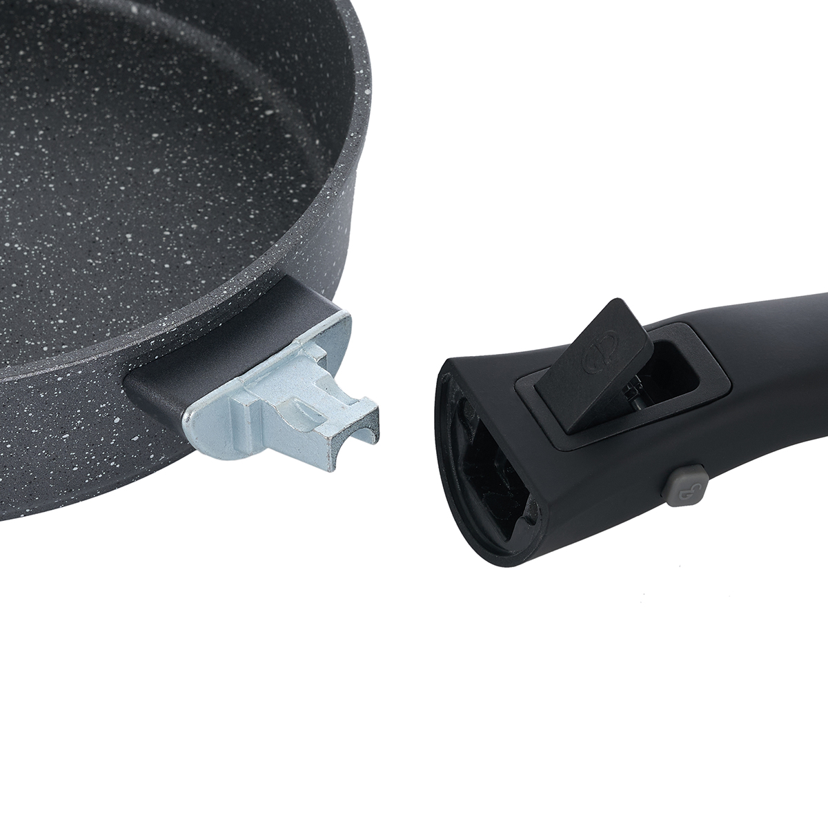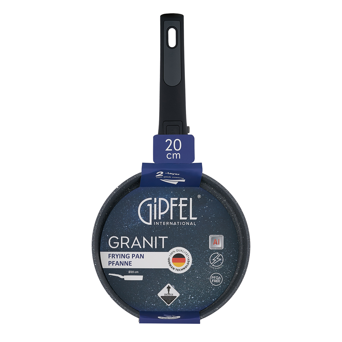 GIPFEL Granit 26 cm pann on mitmekülgne valik lõuna- või õhtusöögi valmistamiseks 3–4-liikmelisele perele. Sellel mudelil on suur 6 cm sügavus, mis teeb selles mugavaks mitte ainult praadimise, vaid ka hautamise. Peamine eelis on eemaldatav käepide. See võimaldab panni hõlpsalt muuta ahju küpsetusvormiks või mahutada selle kompaktselt nõudepesumasinasse, külmkappi või kappi.
