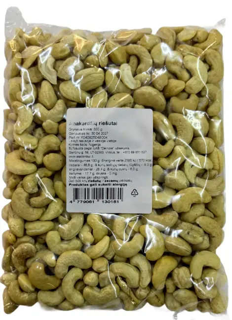 Läbipaistev pakend: 500 g kott võimaldab ostjal hinnata pähklite terviklikkust ja kvaliteeti enne ostmist.