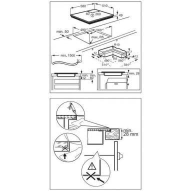 Paigaldage seade ettevalmistatud 560×490 mm avasse tööpinnas, tagades vaba õhuringluse allpool.